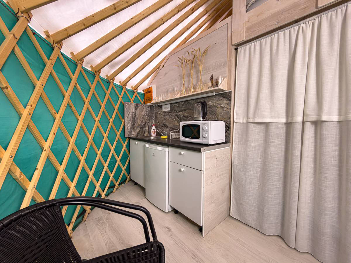 Наша юрта оснащена всеми необходимыми удобствами для вашего комфортного отдыха. Здесь вы найдете душ, туалет, мини-кухню с холодильником и посудой, а также решетку для мангала. Парковка для вашего автомобиля находится рядом с юртой, что позволит вам насладиться отдыхом без лишних забот. Для любителей шашлыка мы предоставляем мангал и шезлонги для отдыха на свежем воздухе.